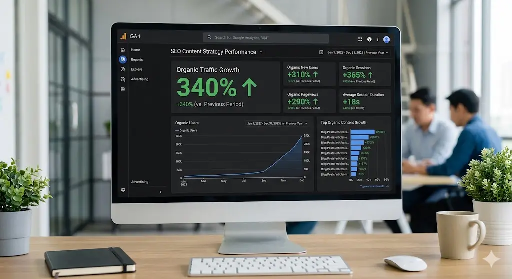 - ✅ Real results and client data (e.g., “We grew organic traffic 340% in 6 months”).